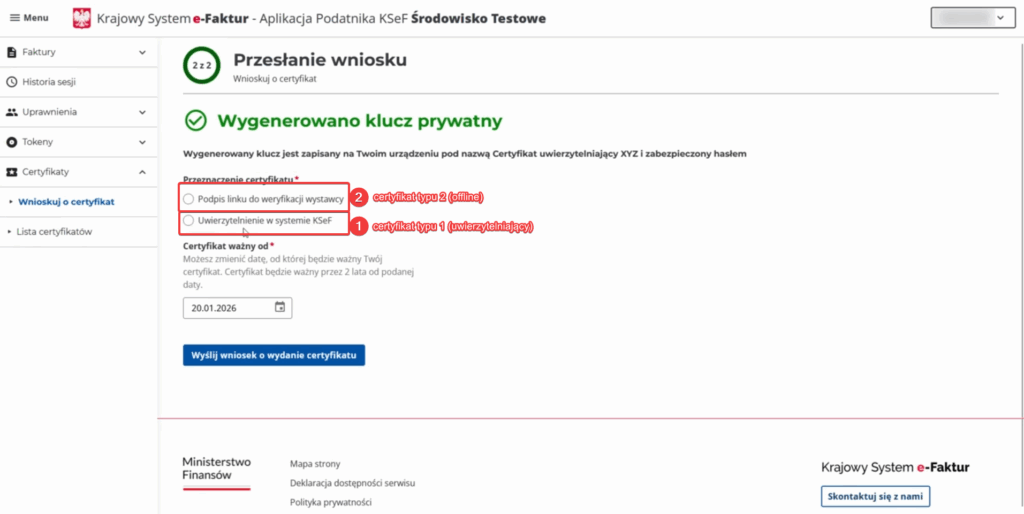 – Certyfikat KSeF typu 1 wymagany jest do uwierzytelniania w systemie KSeF.