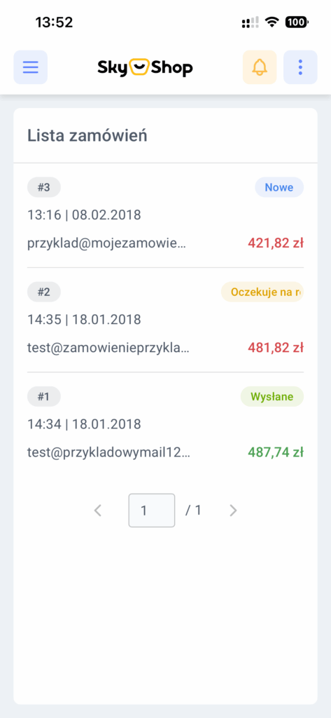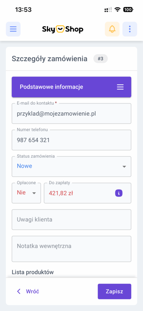 Aplikacja mobilna umożliwia zarządzanie zamówieniami. Dzięki tej funkcji możesz przykładowo edytować zamówienia w sklepie z poziomu urządzenia mobilnego.