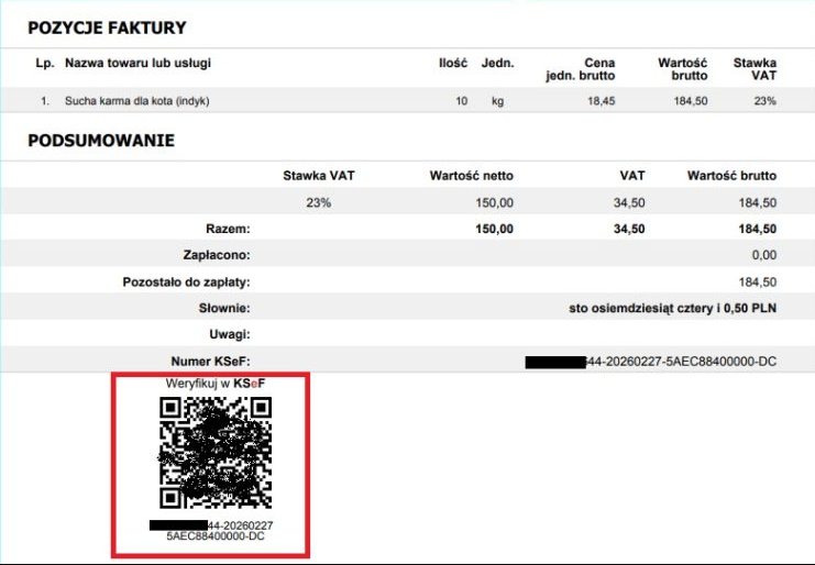 Po tym jak faktura zostanie przesłana po stronie inFakt, a wizualizacja (dokument w formacie PDF z nadanym kodem QR i numerem KSeF) zwrócona, ten sam dokument zostanie podmieniony w panelu Sky-Shop (zastąpi dokument powiązany z zamówieniem, który był dostępny przed przesłaniem do KSeF).