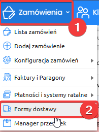 Na początek przejdź do sekcji Zamówienia (1) -> Formy dostawy (2).